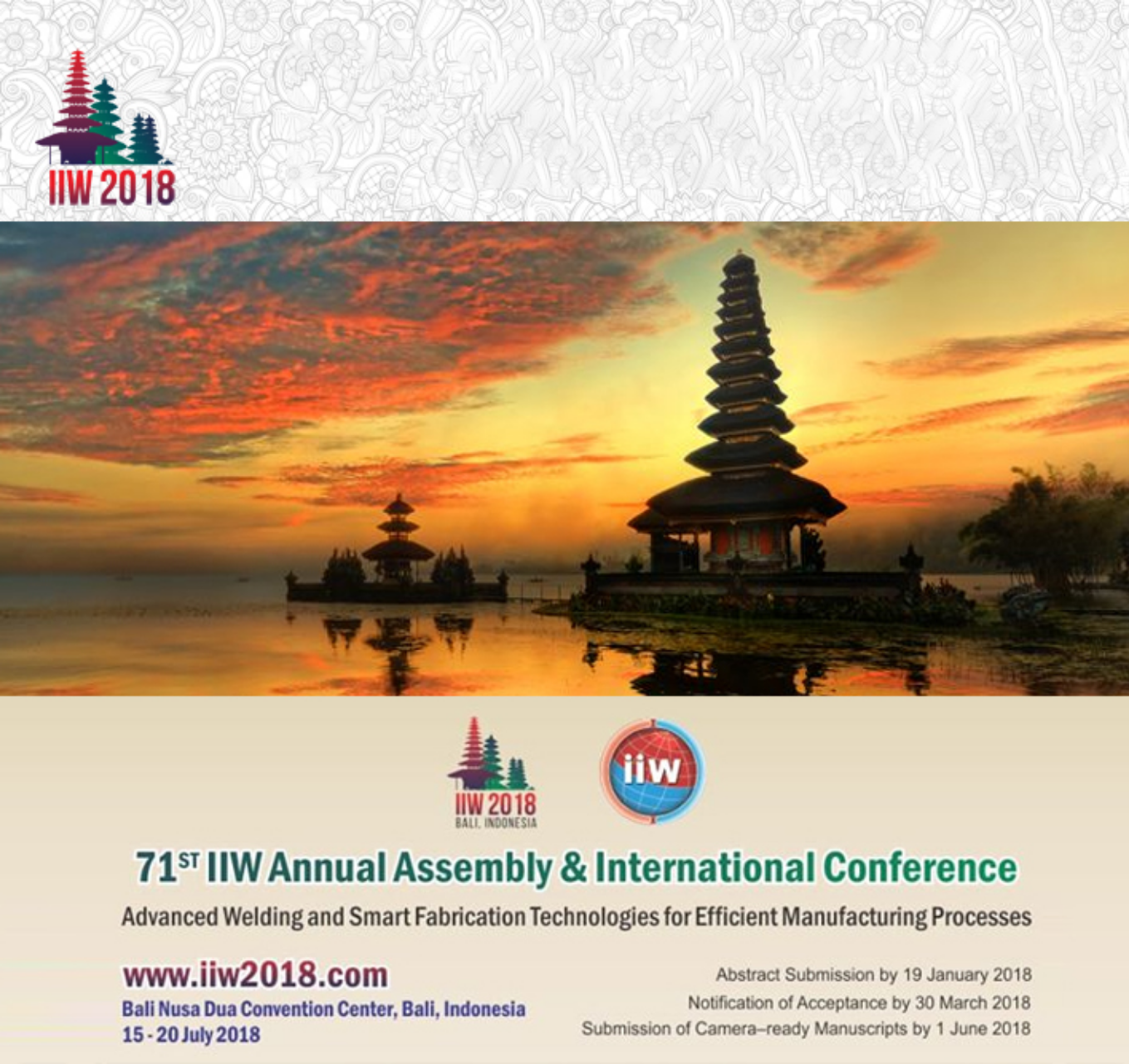 The IIW 2018 International Conference, organized by Indonesian Welding Society will take place on 15-20 July 2018 at Bali Nusa Dua Convention Center, Bali - Indonesia.